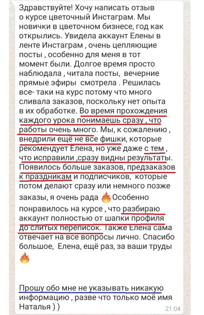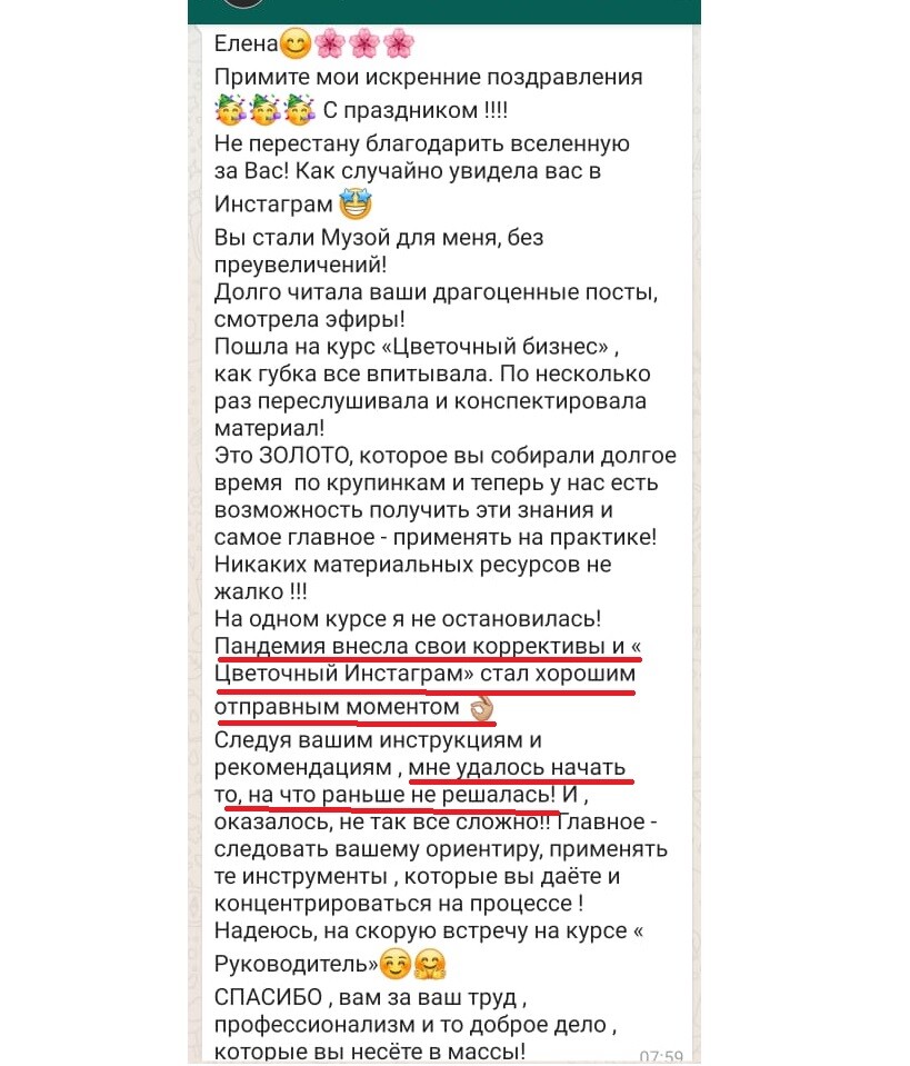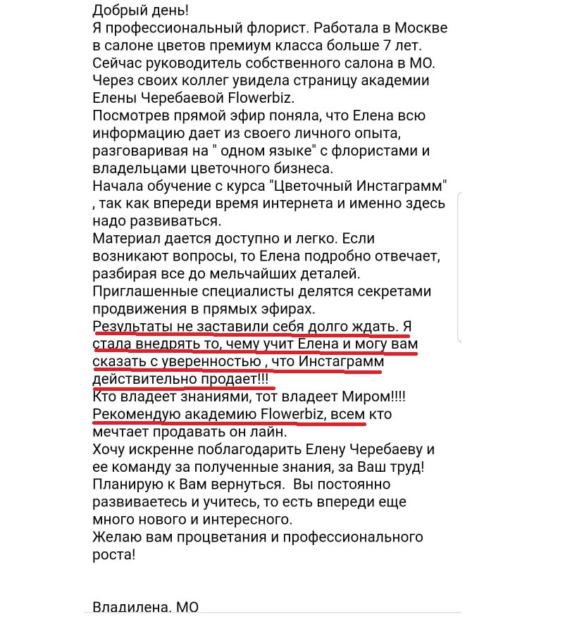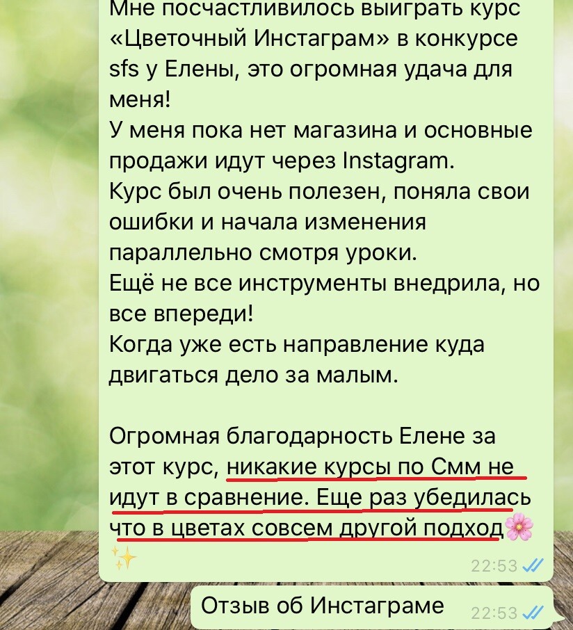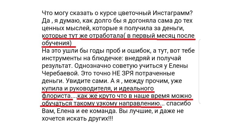 Механизмы и методики курса являются авторскими наработками на основе 10-летнего опыта Елены Черебаевой в цветочной сфере.