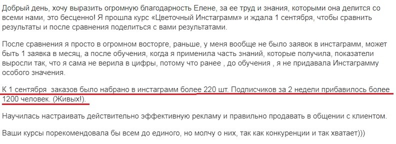 За 1,5 месяца обучения у Елены получите рост прибыли на 30-50%.
